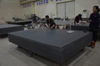 公司历来非常重视同各大科研院所合作,通过校企合作、研企合作,共同探讨中国超精密机械设备的研发改进,促进机床行业的发展。 公司研制的弱撞击试验台用花岗岩平台,是弱撞击式对接机构对接性能试验台的基础平台,用于两航天模拟器气浮而实现空间失重运动状态模拟,有较高的性能和质量要求。台面为实现气浮平面,能够承载5000kg/㎡的气浮载荷在平面轻松自如无卡滞运动,包括通过接缝,该平台承载形式为移动载荷,每块平台同时承受不超过两处载荷,每处承载面积为1㎡。